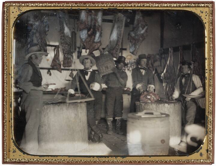 While the maker of this image remains unknown, evidence suggests that it may have been produced in Sag Harbor, New York, a bustling harbor town at the eastern end of Long Island. An astonishing artistic and technical achievement, this plate was made under challenging conditions, far from the conveniences and controlled lighting of the daguerreotypist's own studio. This plate is distinguished by its remarkable, whole plate size and the animation of its composition.