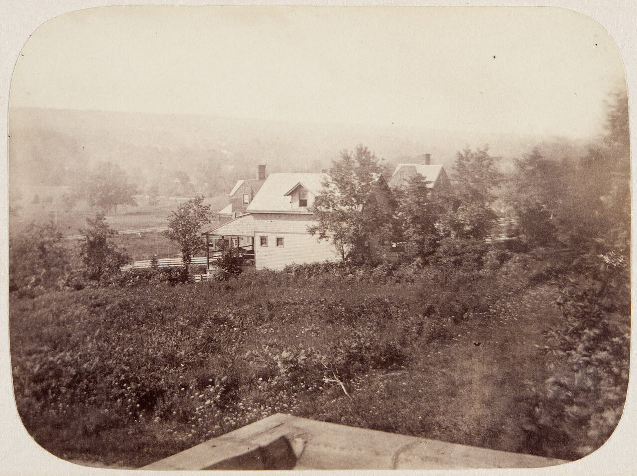 "1884 Edge of our veranda in foreground."