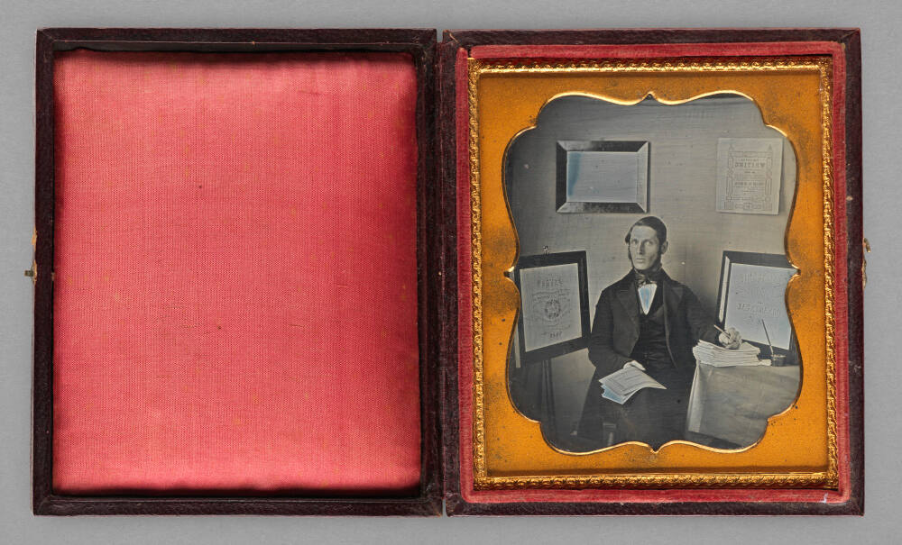 InscribedScratched on back of plate: "Jas. D. Robey, 39 [illeg.] yrs., Feb. 1854, Suncook, N.H. by B. [illeg.] Barbour."