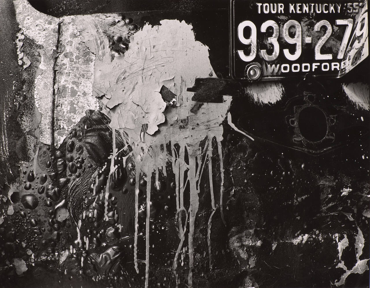 [License plate and splattered paint]