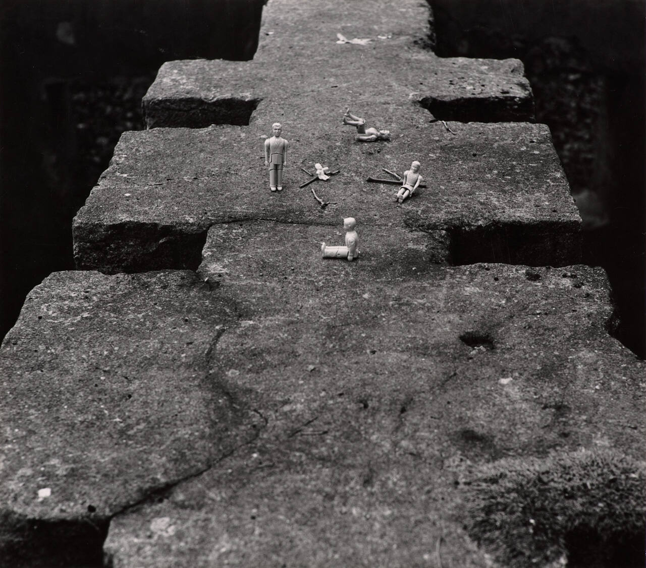 Untitled (dolls on rock wall)