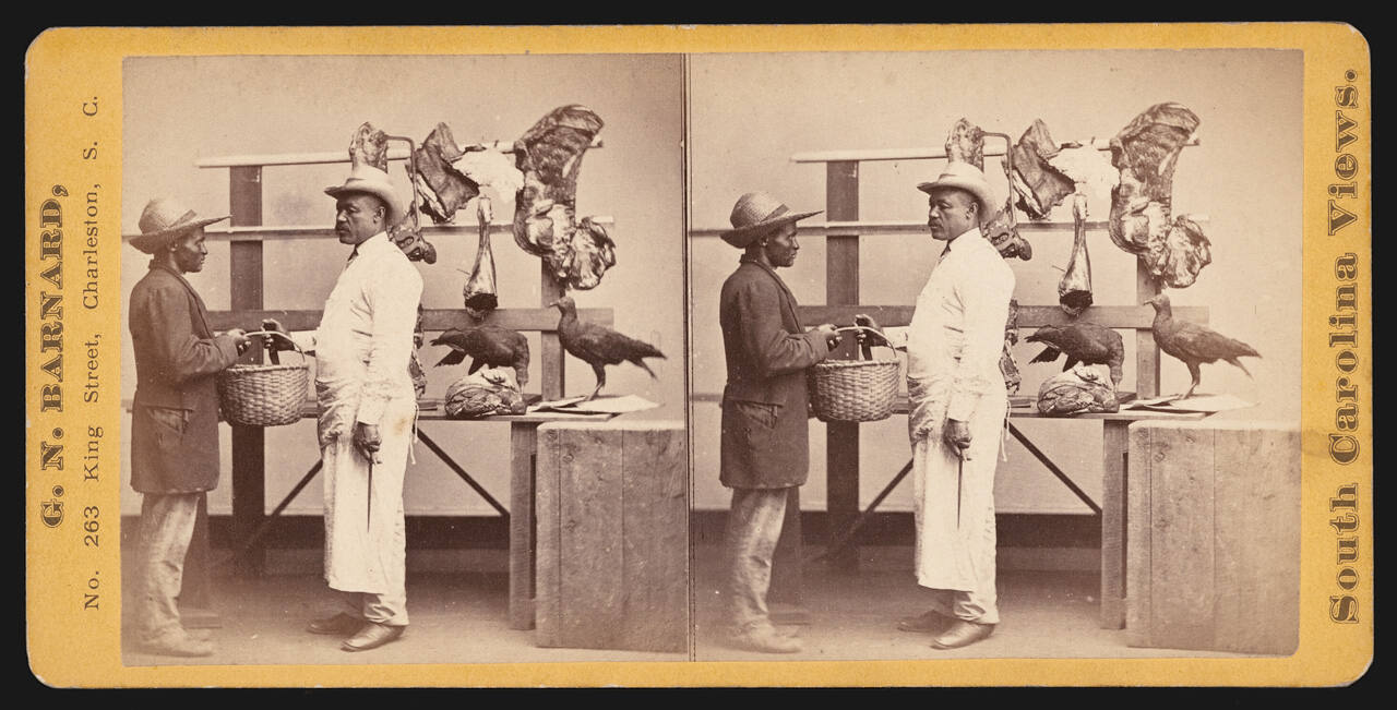 On mount verso, center, white label, in black type: "No. 24. / BUTCHER'S STALL IN CHARLESTON MARKET--BUZZARDS / ENJOYING THEIR MORNING MEAL".