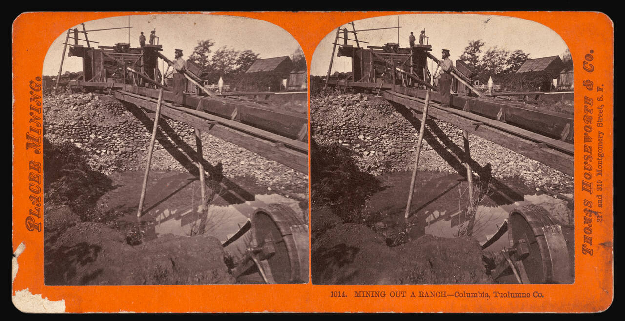 On mount recto, lower right, in black type: "1014. MINING OUT A RANCH - Columbia, Tuolumne Co.".