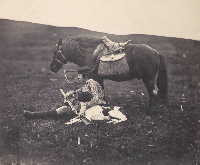 After briefly pursuing a military career and serving as a member of Parliament, Horatio Ross became a respected amateur photographer. This image of a boy (likely one of Ross’s five sons) with his dog and pony captures the photographer’s love of the outdoors. An avid sportsman and marksman, Ross often took images of friends and family members engaged in sporting ventures.