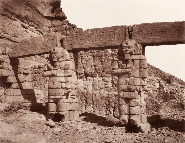 InscribedPrinted top mount: "Nubie;" printed bottom left mount: "Imp. Phot. de H. de Fonteny et Cie f. à Paris, r. St. Nicholas d'Antin, 72;" printed bottom right mount: "Publié par Goupil et Cie èditeurs, Paris, Londres, Berlin, New York;" printed bottom center mount: "Djerf-Hocein (Tutzis) / Hemi-Speos Colosses de la Partie Extérieure / pl. 124"