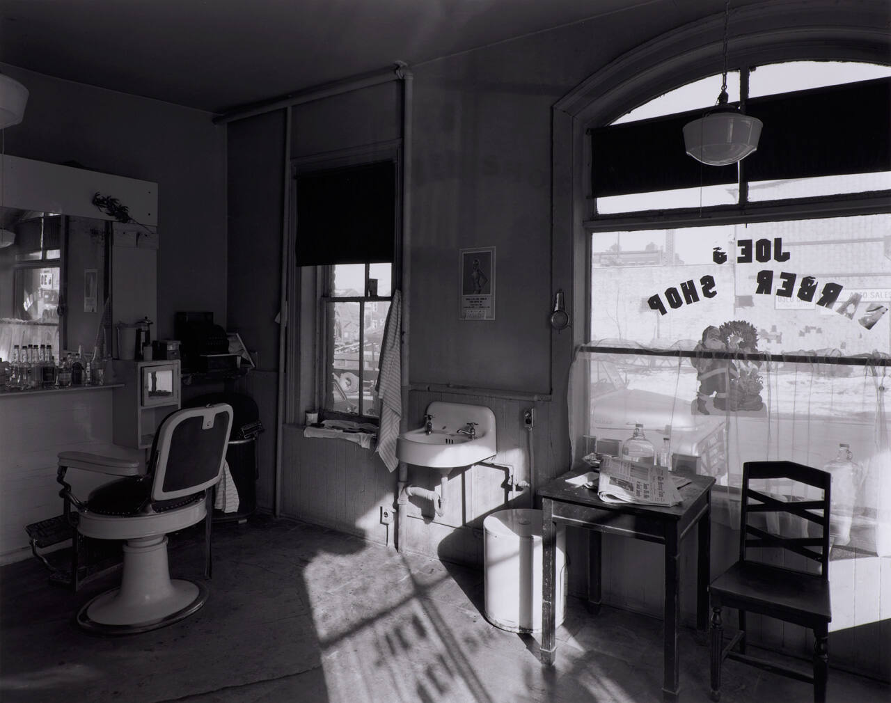 Inscribedin pencil at bottom of back of mount: "JOE'S BARBER SHOP, PATERSON, NEW JERSEY, 1970 PRINT: 11/19/03 MULTIGRADE-SELENIUM".