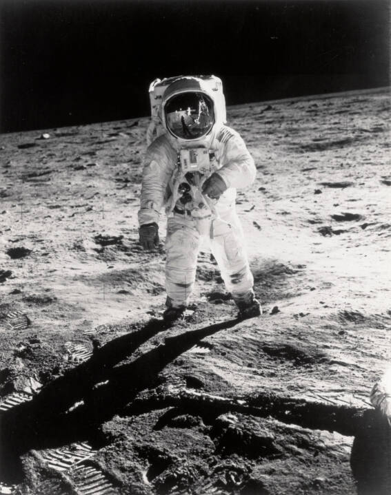 Buzz Aldrin on the moon (Apollo 11), photographed by Neil Armstrong