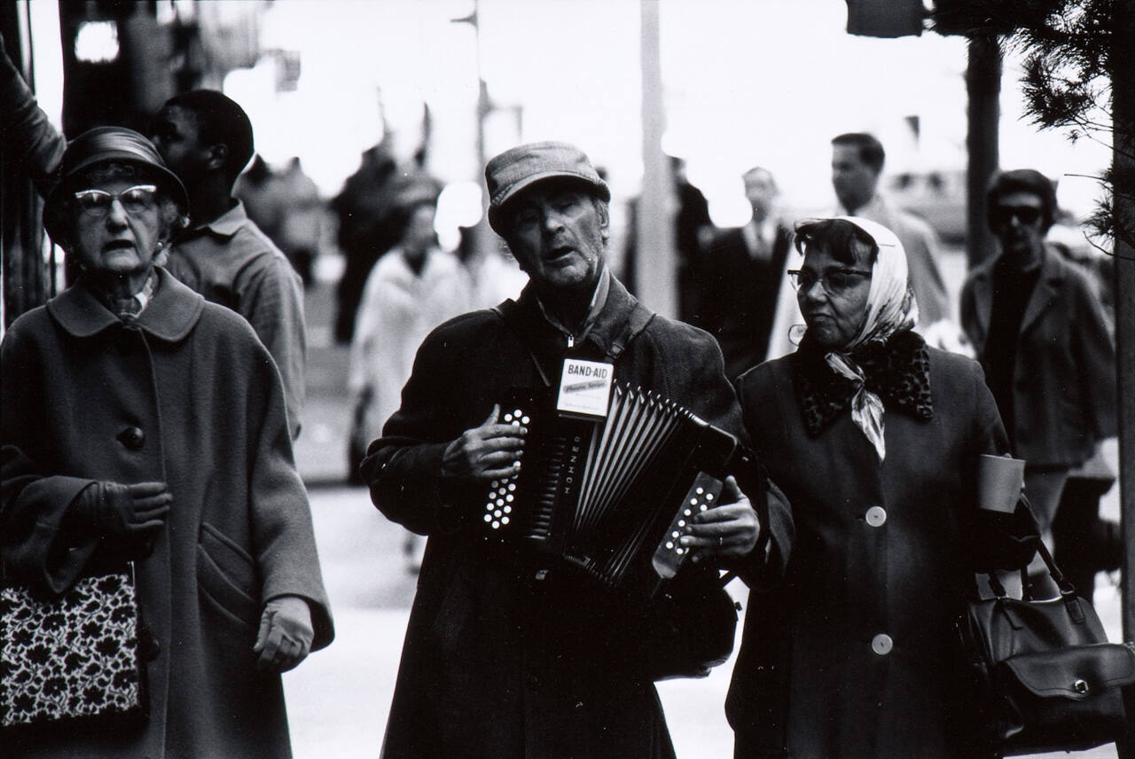 DescriptionMan playing accordion on city street; woman on either side of him.Exhibition HistoryMultitude, Solitude: The Photographs of Dave Heath. Philadelphia Museum of Art, Philadelphia, PA, September 19, 2015 – February 21, 2016, The Nelson-Atkins Museum of Art, Kansas City, MO, November 19, 2016 – March 19, 2017, 238.