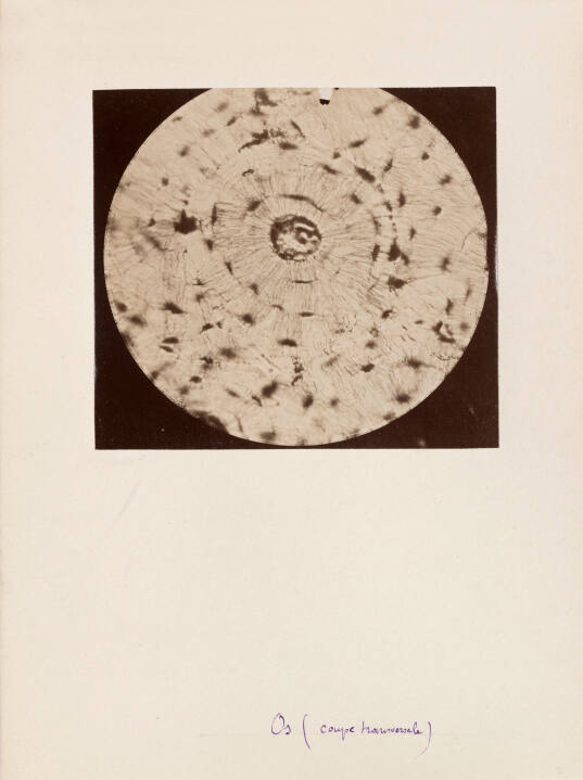 InscribedOn mount recto, bottom, in blue pen: "Os (coupe transversale)";