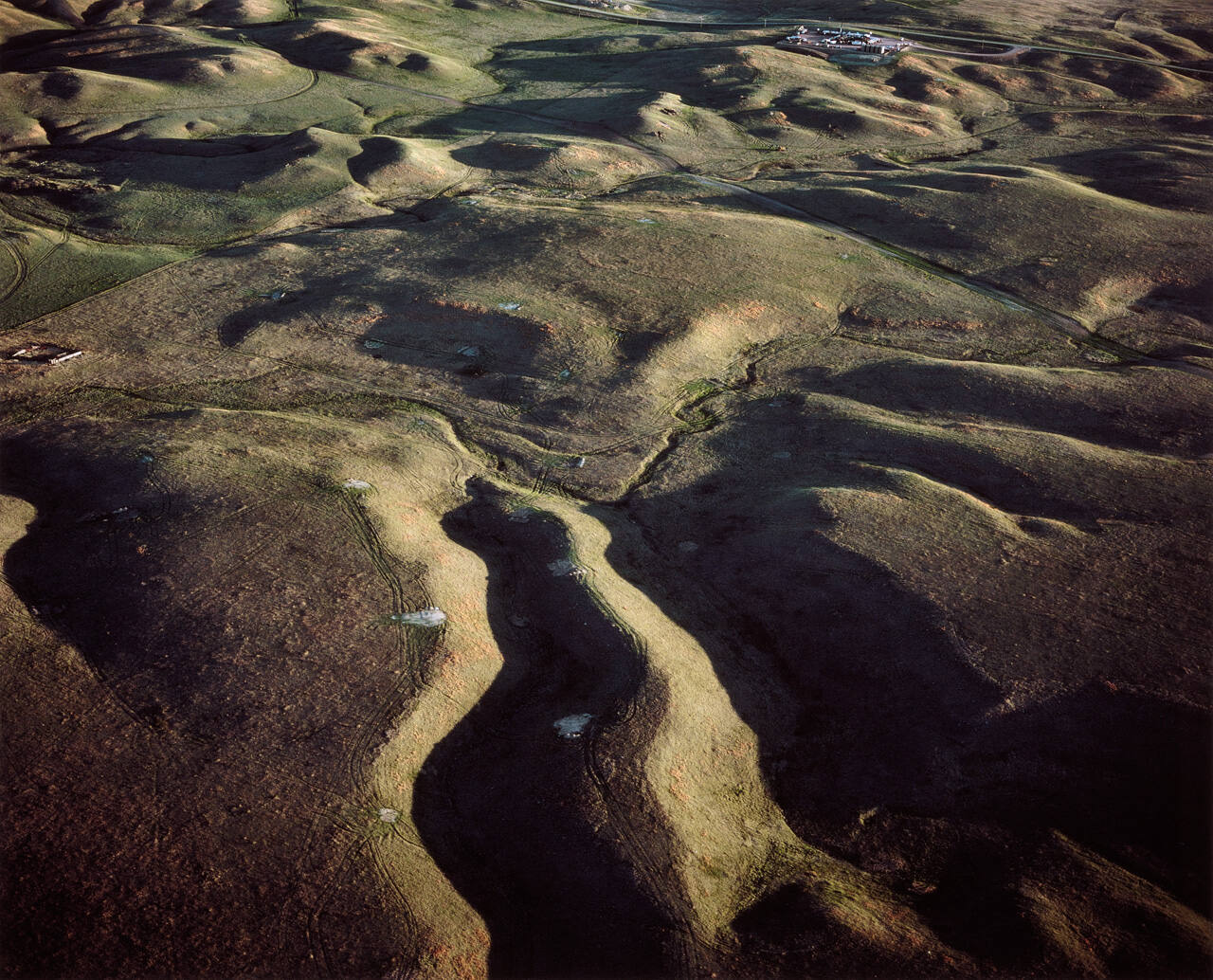 DescriptionImage of rolling green hills with white patches of gravel scrattered throughout.Copyright© Terry Evans
