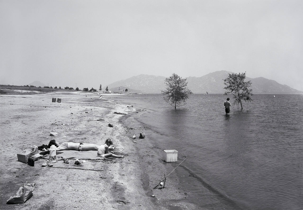 DescriptionImage of a lady lying on the beach in a bikini; a little girl sits on the blanket beside her and plays in the sand.Copyright© Anthony Hernandez