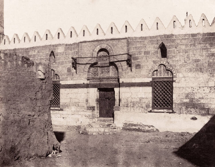 InscribedOn front of mount, upper center, typed in black “ÉGYPTE”. On front of mount, lower left, typed in black “Imp. Phot. de H. de Fonteny et c.ief. à Paris en 1851, r. S.t Nicolas d’Antin, 72. Félix Teynard Publié par Goupil Cie . editeurs, Paris, Londres, Berlin, New York / SOUÂDJ. / TOMBEAU DE MOURÂD-BEY―ENTRÉDE DE LA MOSQUÉE. / Pl.21.”