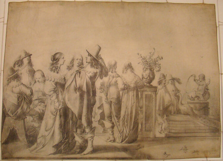 Purchased at hihs sale, Fine Old Master Drawings from American Collections, Sotheby Parke Bernet, New York, October 22, 1970, lot 45, as Elegant Company on a Terrace, by Milton McGreevy (1903-1980), Shawnee Mission, KS, October 22, 1970-December 30, 1975 [1];