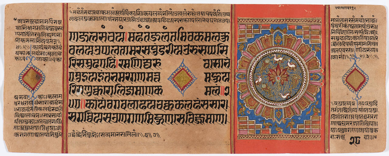 Jain Manuscript of the Kalpasutra and Kalakacavyakatha: recto; text, verso; painting of A Lotus Lake, the Tenth Dream