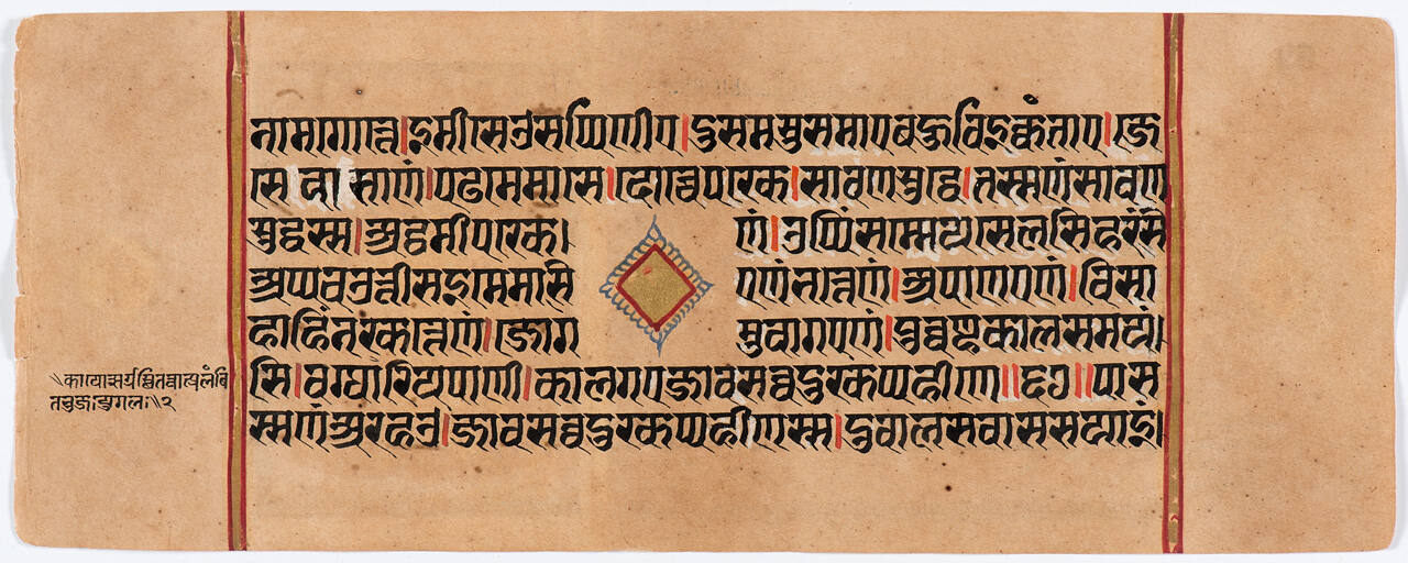 Jain Manuscript of the Kalpasutra and Kalakacavyakatha: recto; text, verso; painting of Nemi in Heaven before his Birth