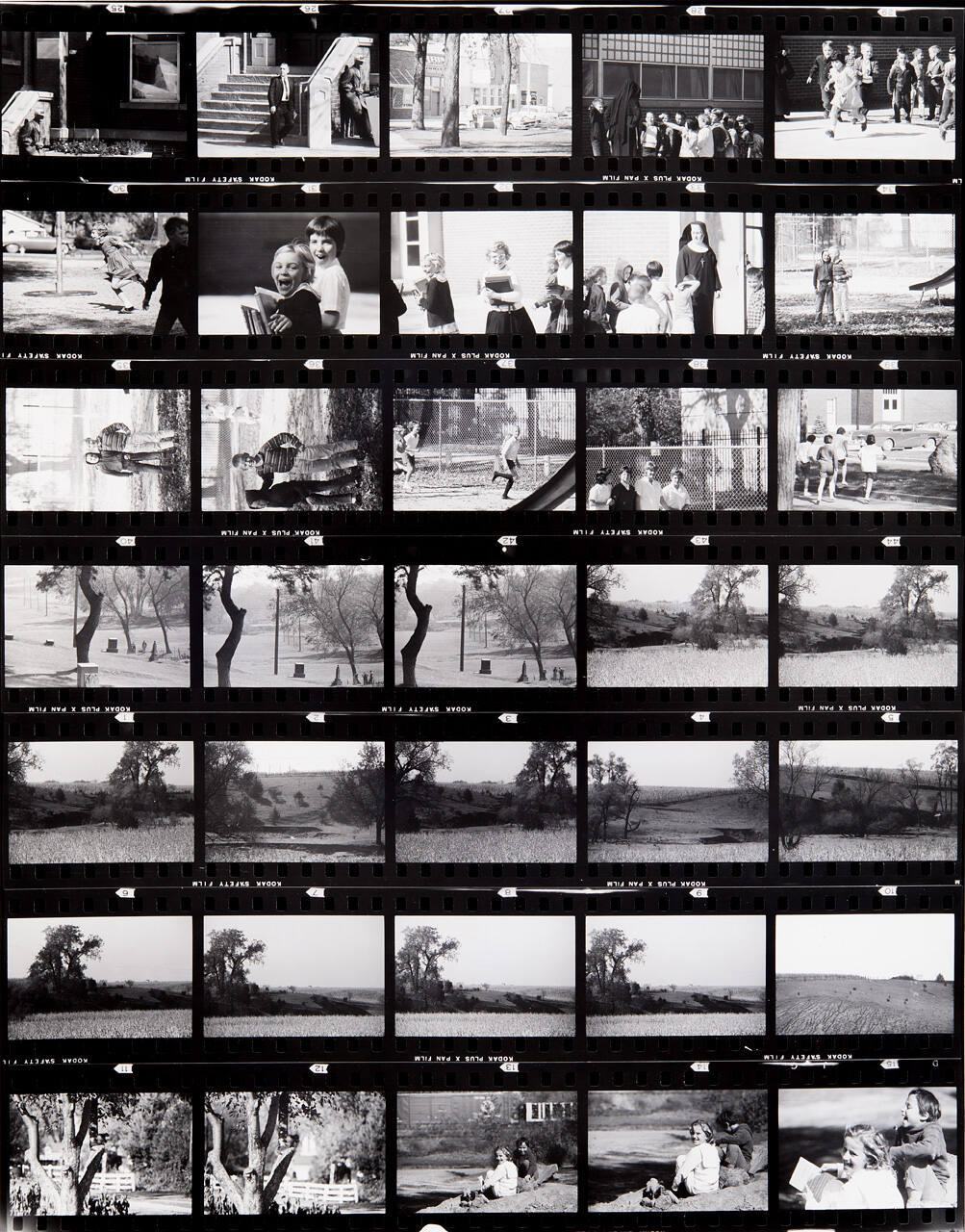DescriptionContact sheet of Guggenheim work Roll #330-336; upper left frame is an image of man leaning next to a brick wall and wearing winter coat and hat.ProvenanceHall Family Foundation, Kansas City, MO, 2013;