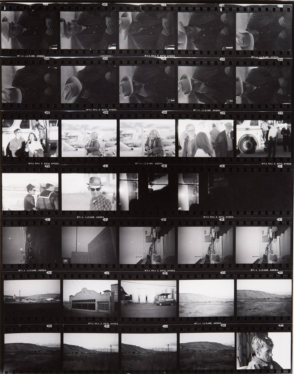 DescriptionContact sheet of Guggenheim work Roll #531-537; upper left frame is a dark image of a man wearing a cowboy hat with his hands in his lap.ProvenanceHall Family Foundation, Kansas City, MO, 2013;