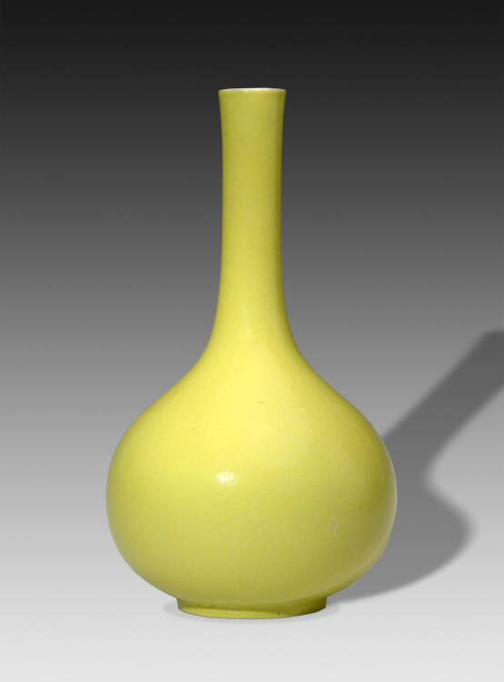 DescriptionBottle-shaped vase with a long thin neck, with a "chicken skin" lemon yellow glaze.Exhibition HistoryArt Treasures Exhibition, Parke-Bernet Galleries, New York, June 15-30, 1955.