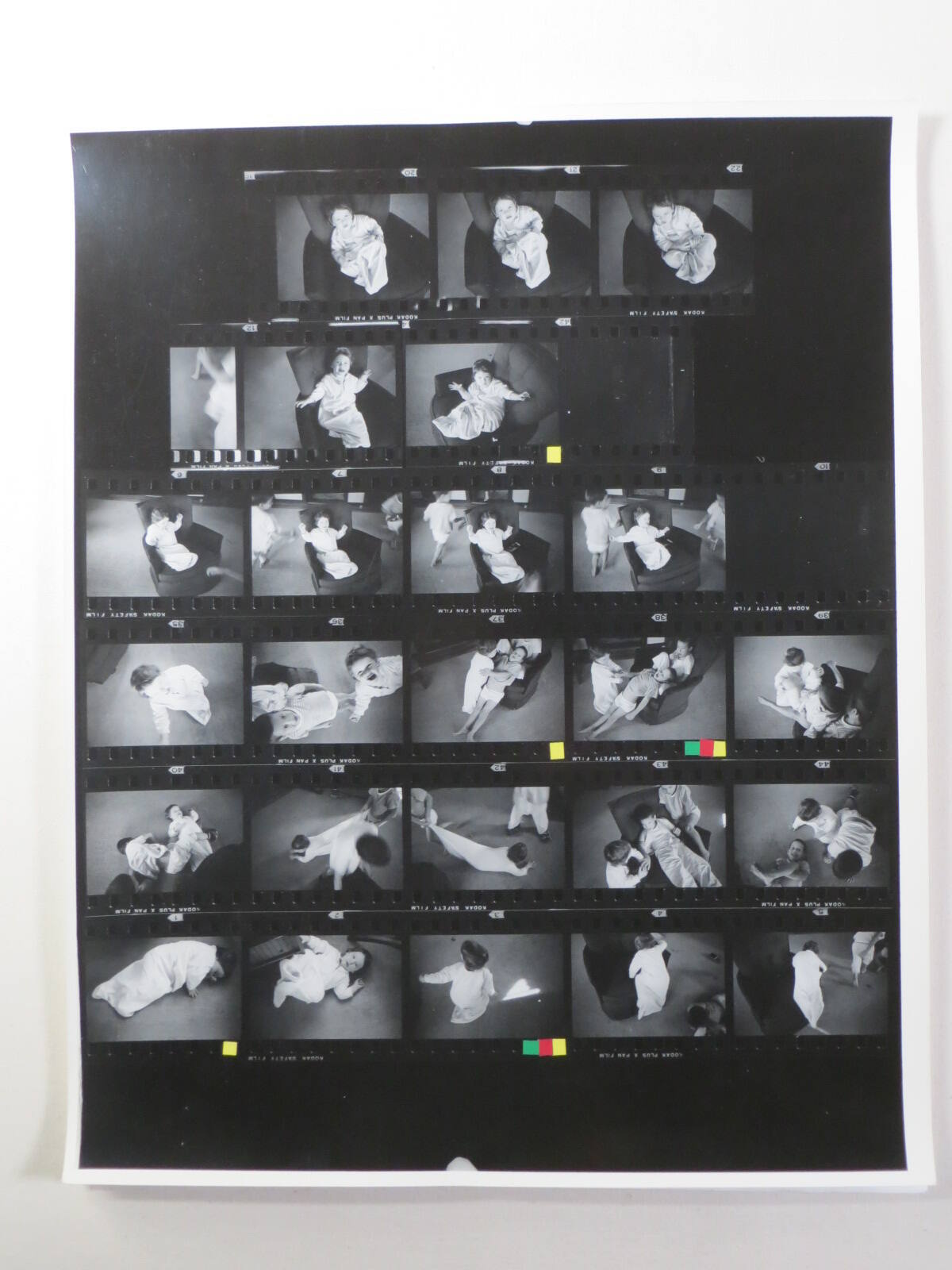 DescriptionContact sheet of Guggenheim work Roll #997-1001; upper left frame is an image of little girl wearing zippered sleeper, sitting in chair, and looking up towards camera (frame #20).ProvenanceHall Family Foundation, Kansas City, MO, 2013;