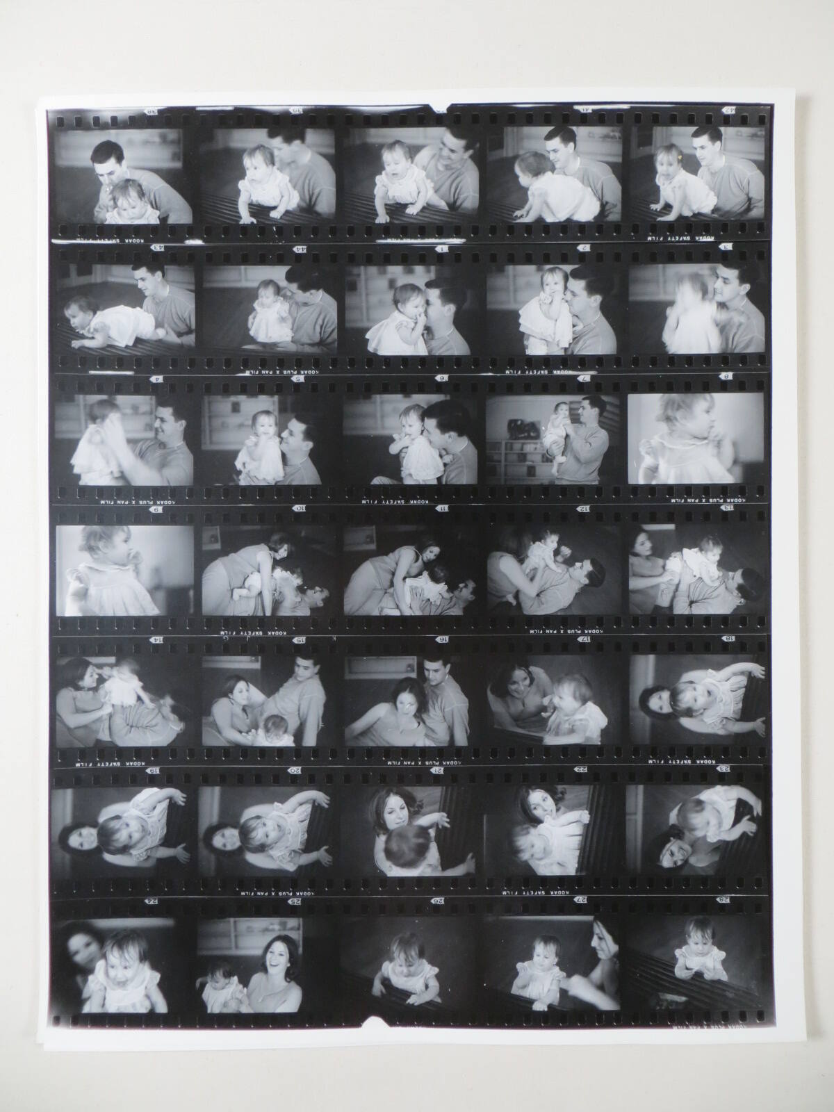 DescriptionContact sheet of Guggenheim work Roll #1556-1562; upper left frame is an image of a man holding a baby girl while smoking a cigarette.ProvenanceHall Family Foundation, Kansas City, MO, 2013;