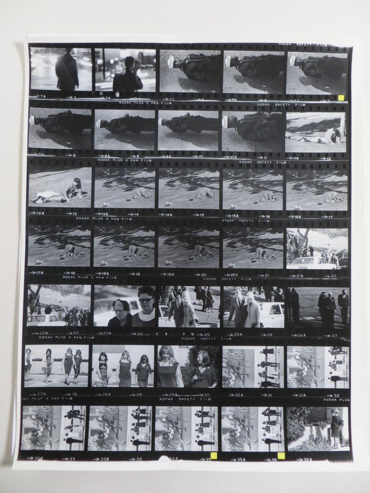 DescriptionContact sheet of Guggenheim work Roll #1753-1759; upper left frame is an image of the back of a man who is standing near the street; car headlights in background.ProvenanceHall Family Foundation, Kansas City, MO, 2013;