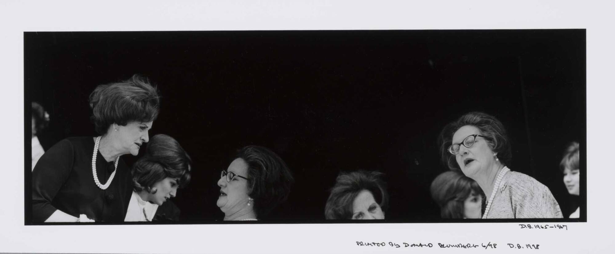 DescriptionPanoramic image composed of contiguous frames showing women with short hair against a black background.Copyright© Donald Blumberg