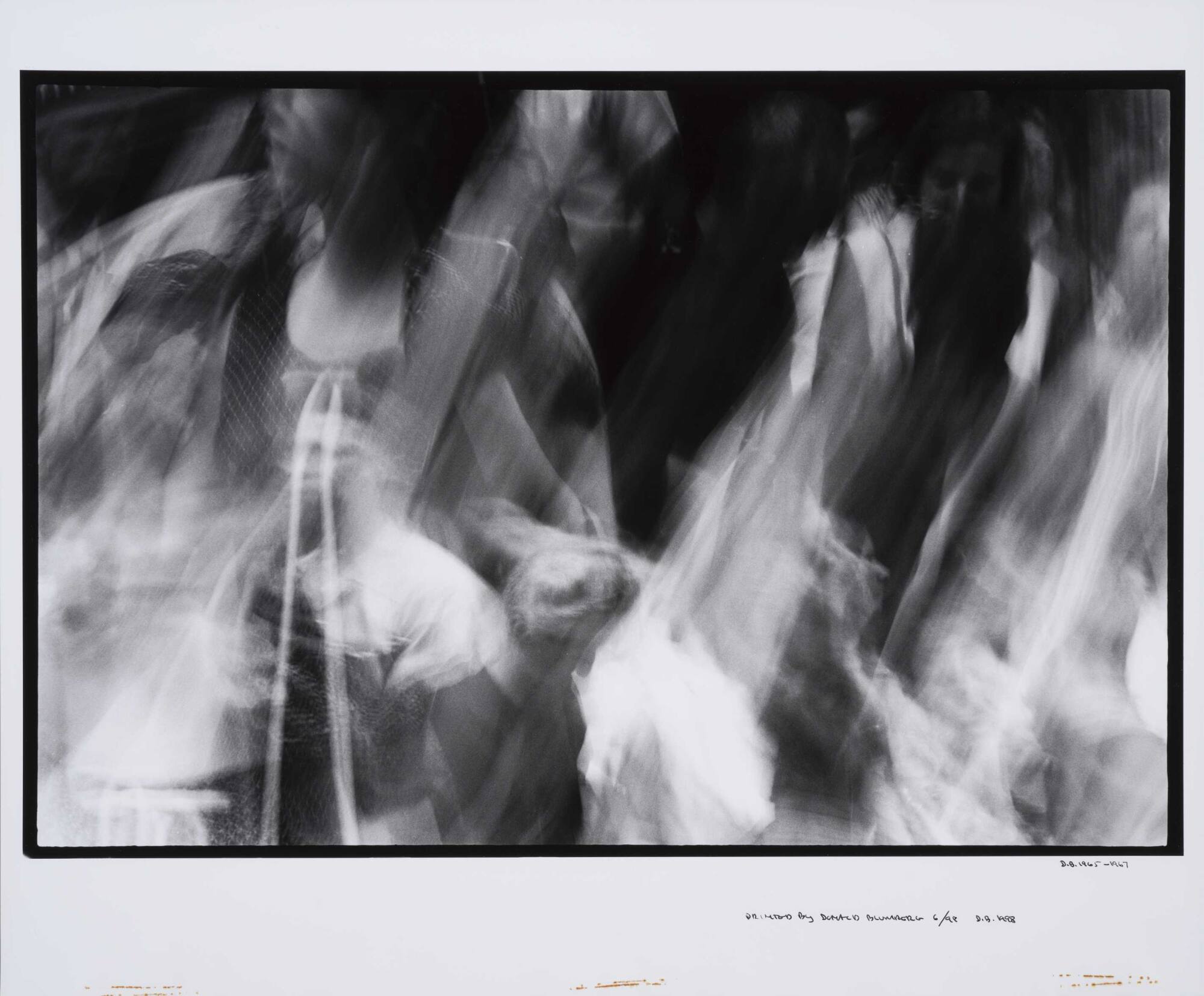DescriptionMultiple exposures with blurry figures overlapping; woman with polkadot dress in foreground.Copyright© Donald Blumberg