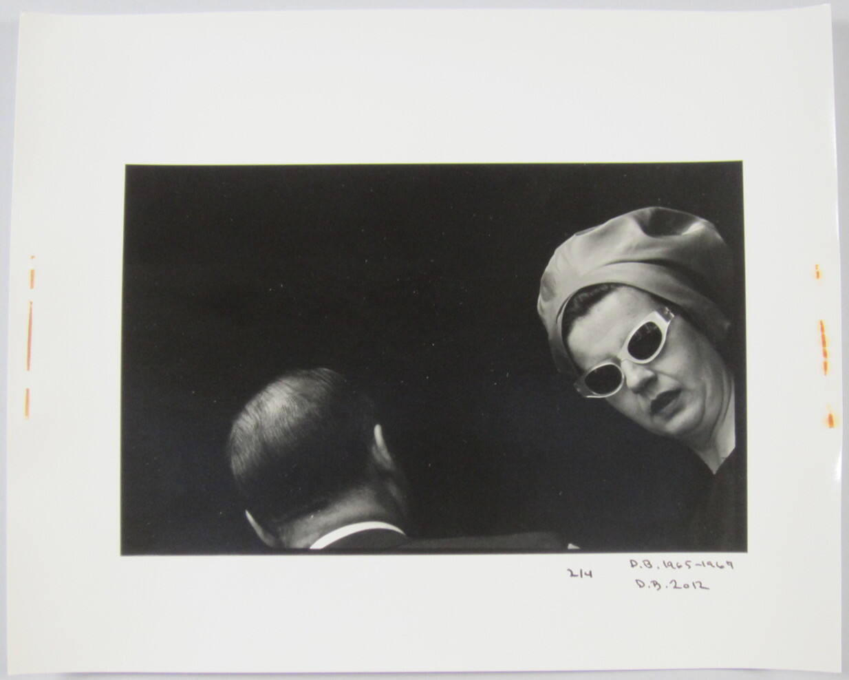 DescriptionImage of the back of man's head and a woman wearing head scarf and sunglasses.Copyright© Donald Blumberg