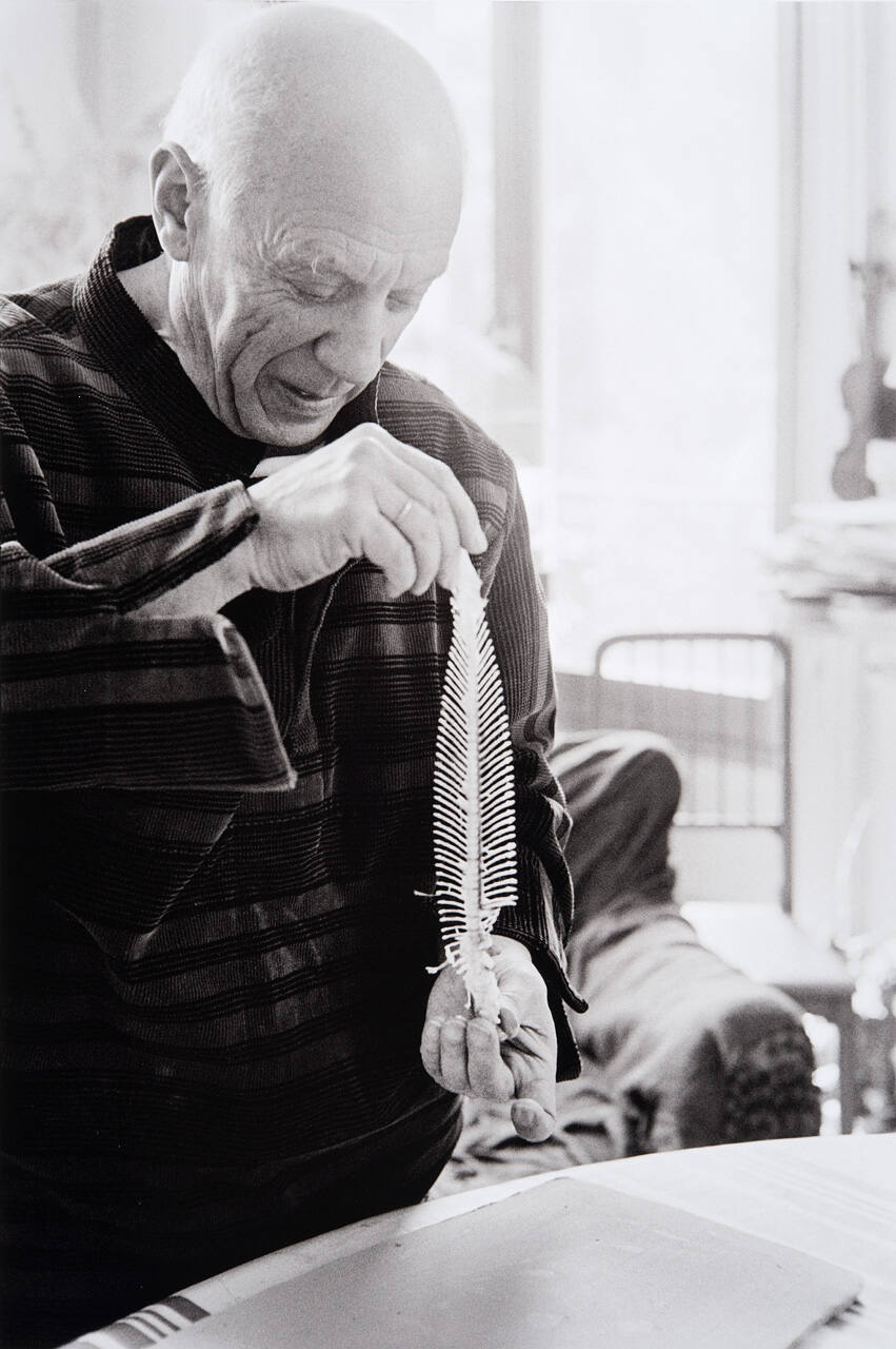 DescriptionImage of Picasso holding fish skeleton.Copyright© Harry Ransom Center, The University of Texas at Austin