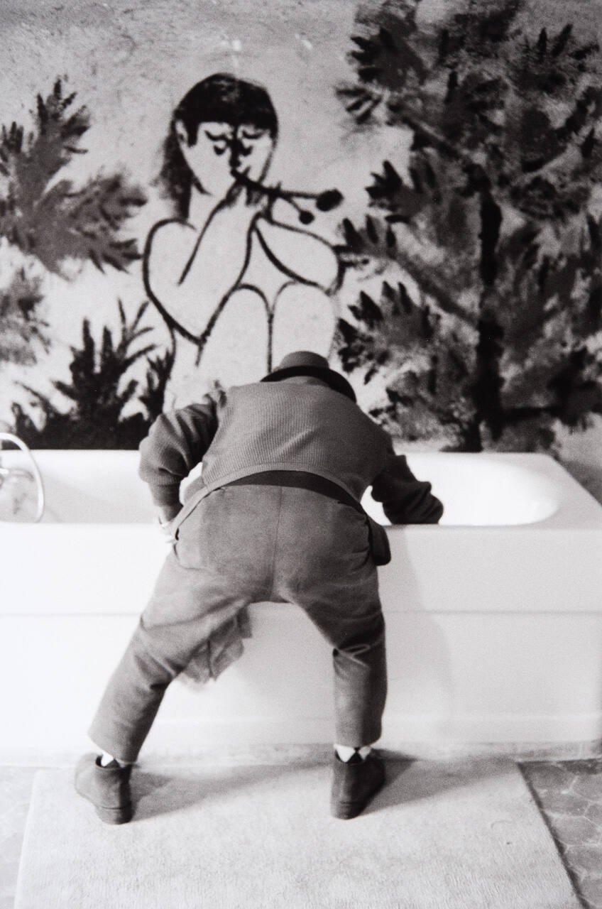 DescriptionImage of man leaning over bath tub.Copyright© Harry Ransom Center, The University of Texas at Austin