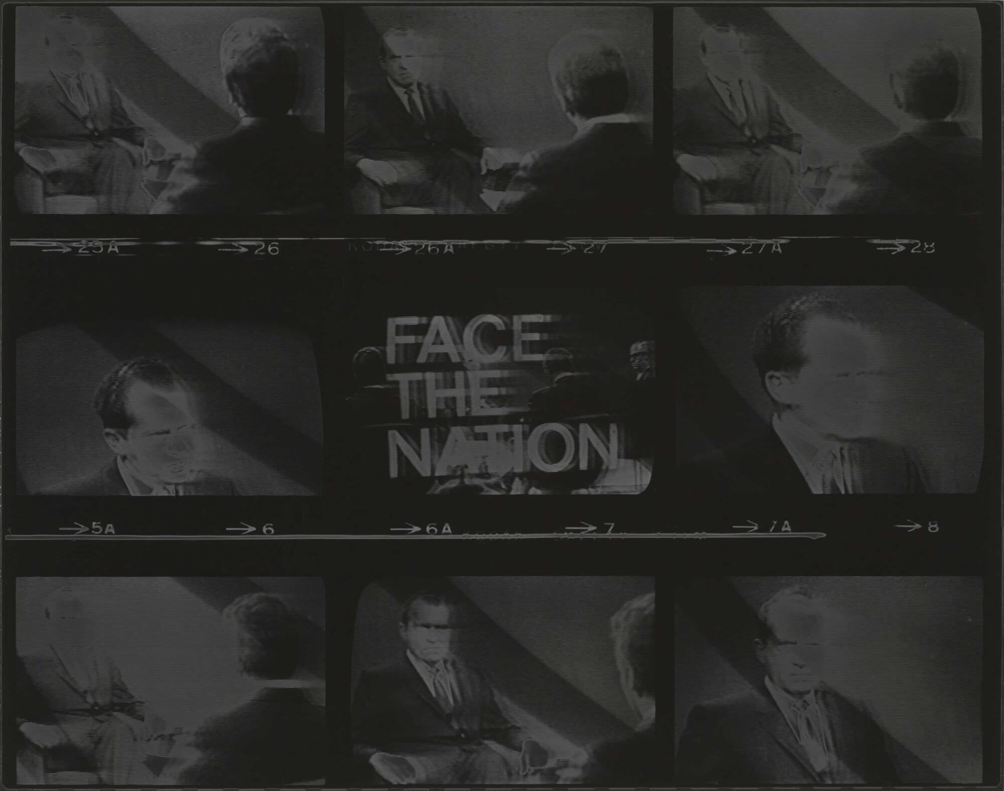 DescriptionImage of three film strips with frames of Richard Nixon being interviewed on TV's Face The Nation.Copyright© Donald Blumberg