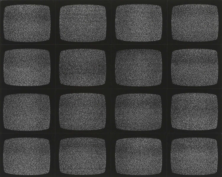 DescriptionImage of 16 television screens of static.Copyright© Donald Blumberg