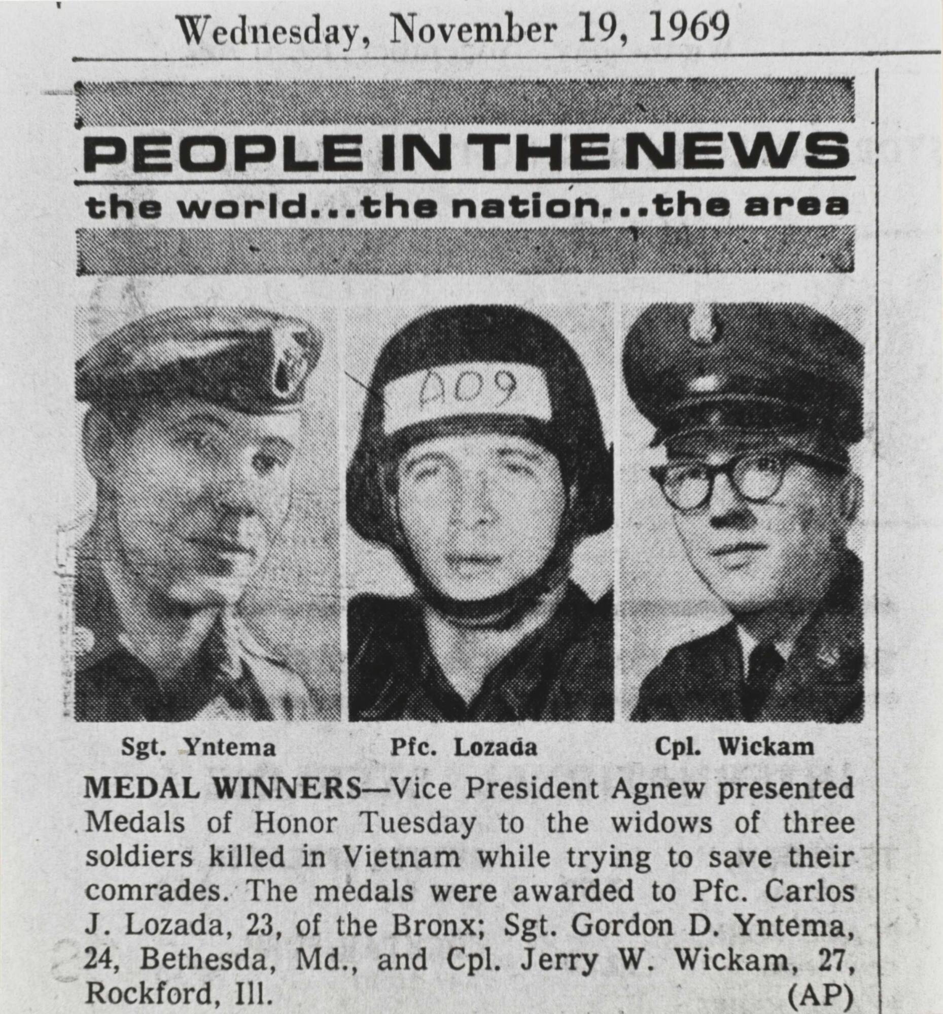 DescriptionImage of a newspaper dated November 19, 1969 with the headline "People in the News".Copyright© Donald Blumberg