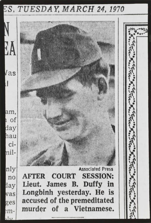 DescriptionImage of a newspaper dated March 24, 1970 with photograph of soldier smiling.Copyright© Donald Blumberg