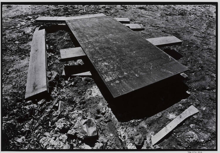 DescriptionImage of boards laying on ground with metal sheet on top.Copyright© Donald Blumberg