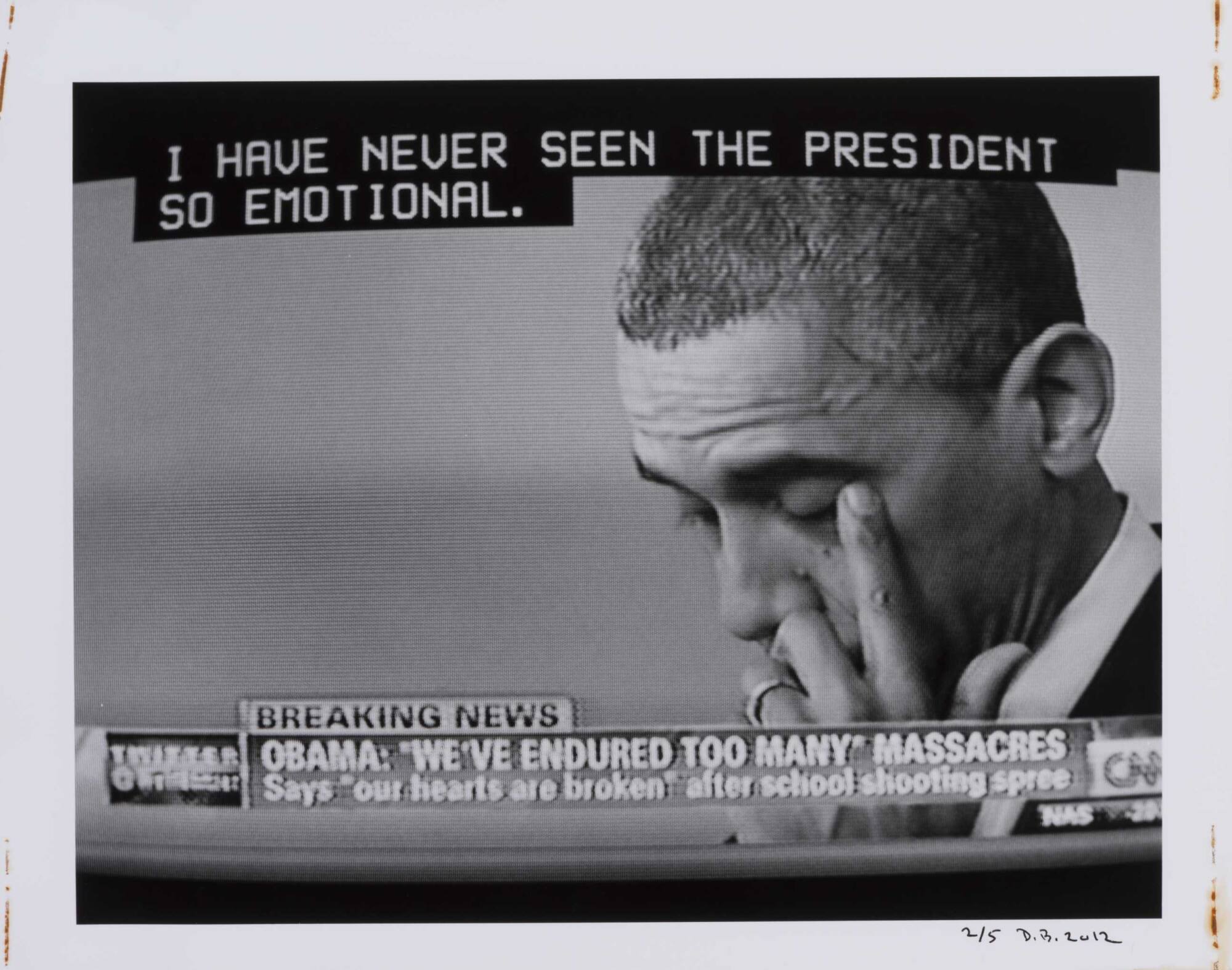 DescriptionImage of a television screen showing President Obama with his hand held up to his face and subtitles "I HAVE NEVER SEEN THE PRESIDENT..."Copyright© Donald Blumberg