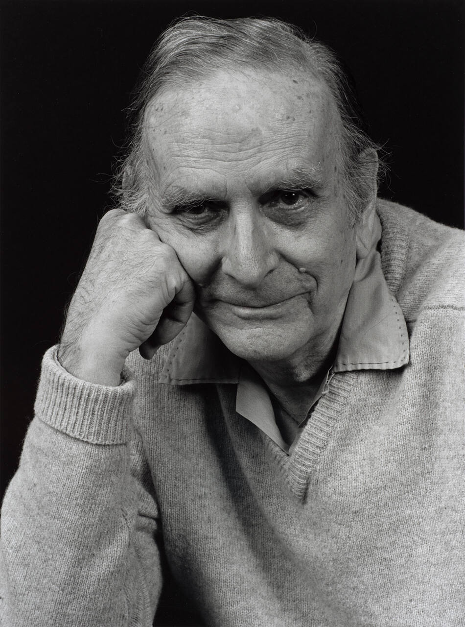 DescriptionPortrait of Frederick Sommer wearing v-neck sweater and resting head on right hand.Copyright© Abe Aronow