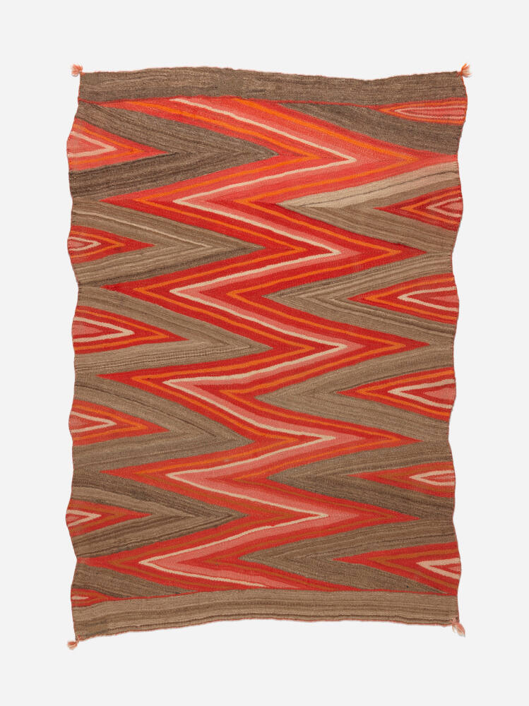 DescriptionA textile woven in shades of brown, beige, red, pink, orange and white with a central design motif of zigzag form running from top to bottom.Published ReferencesTorrence, Gaylord, ed. Continuum: North American Native Art at the Nelson-Atkins Museum of Art. Kansas City: Nelson-Atkins Museum of Art.