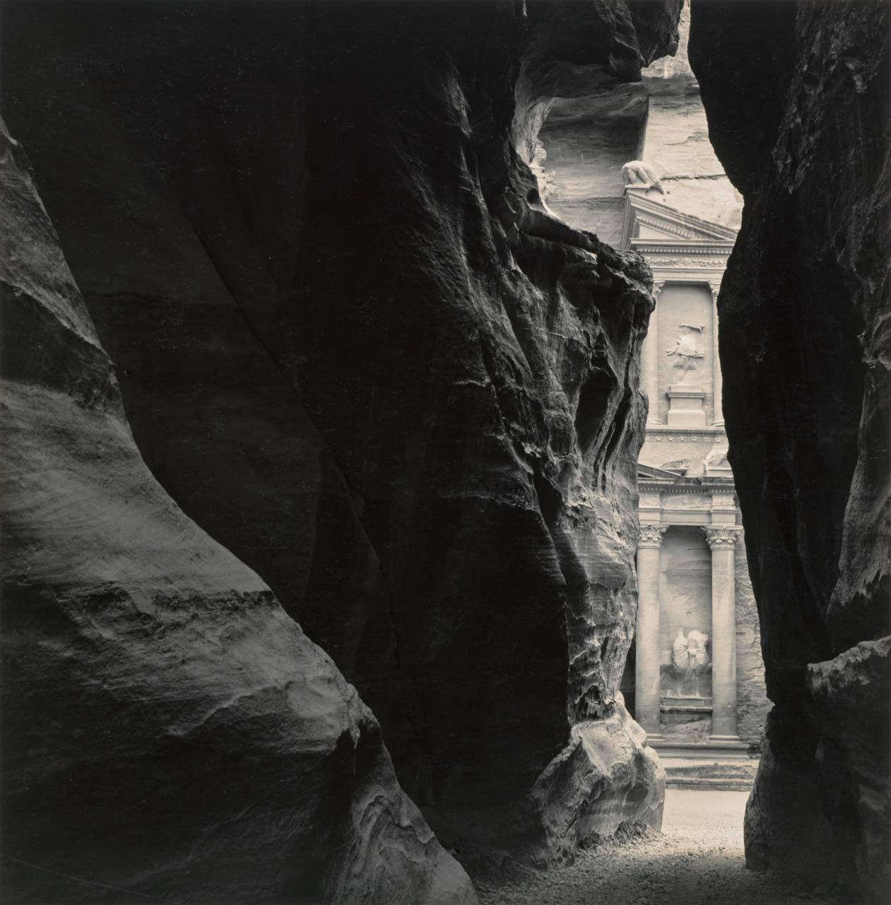 InscribedTitled and dated on sheet verso, bottom center, in pencil: "El Khazmeh from the Siq, Petra Jordan, 1983"
