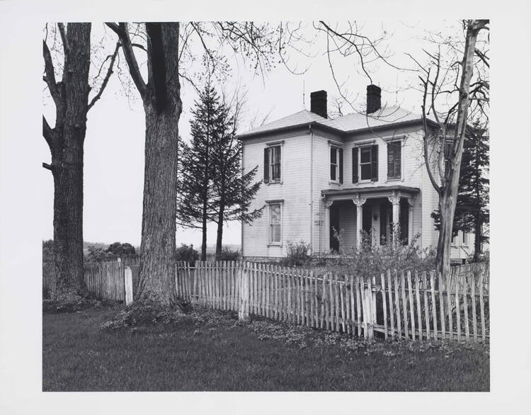 DescriptionImage of a two-story farm house with picket fence and large trees.Copyright© David Plowden