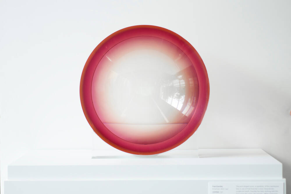 This sculpture immerses viewers in a wide-angle lens on the world. Its parabolic curve, made from cast resin, distorts our perception of surrounding objects. Before becoming an artist in 1967, Frederick Eversley was a senior aerospace engineer for NASA. Eversley maintains that his work has more to do with black holes than with him "being Black." His works, visionary for how they fuse art with optical physics, opened new dimensions in Minimalist sculpture.