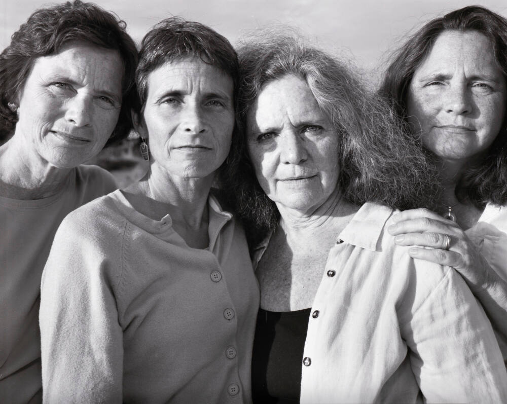 DescriptionClosely cropped portrait of four sisters. Laurie, far right, rests her hand on Bebe's shoulder.Copyright© Nicholas Nixon