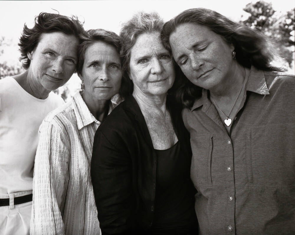 DescriptionPortrait of four sisters tightly grouped with heads resting against each other. Laurie, on the far right, is wearing a heart pendant and has her eyes closed.Copyright© Nicholas Nixon