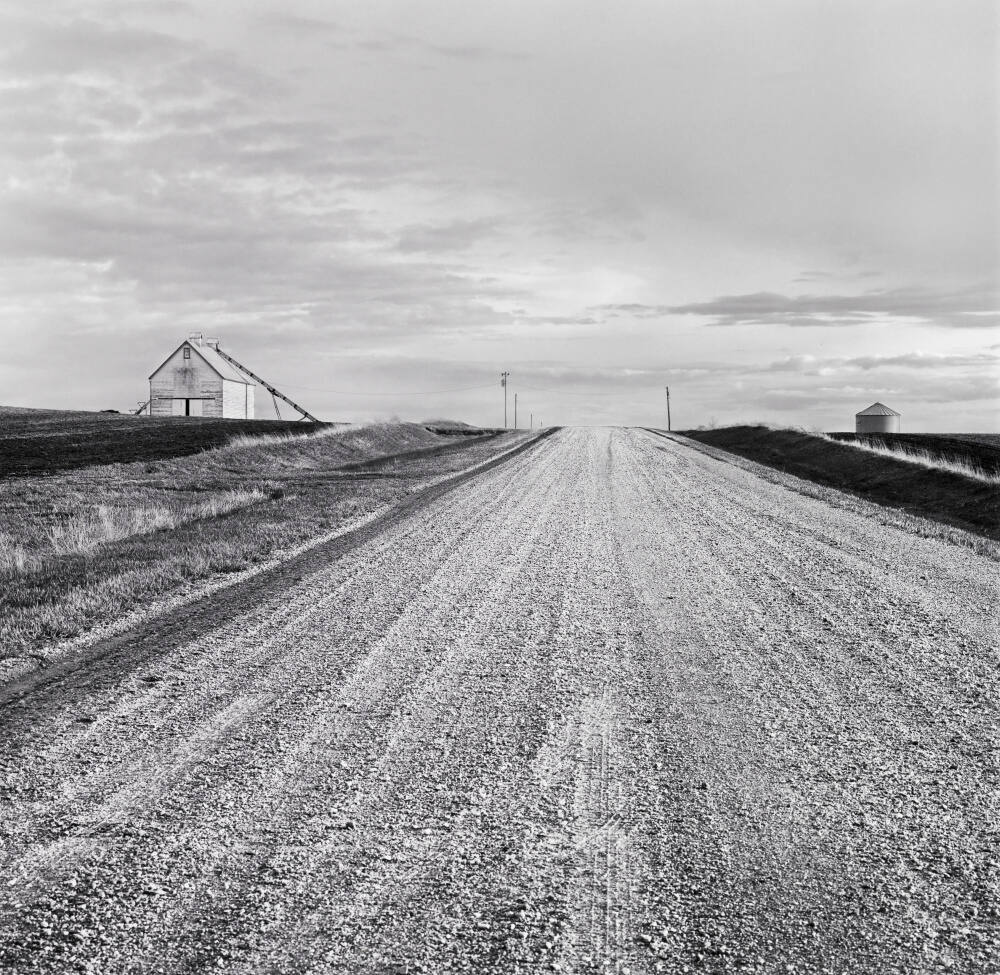 DescriptionImage of country road leading up to serene horizon. A small barn is on the left and a silo on the right.Copyright© David Plowden