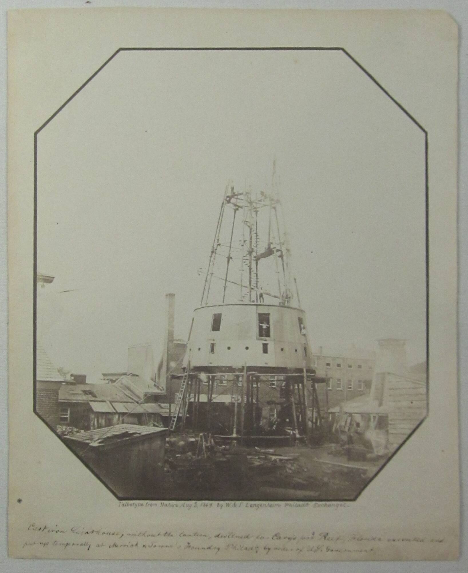 InscribedOn sheet recto, bottom, in black pen: "Cast iron Lighthouse, without the lantern, destined for Cary's Fort Reef, Florida executed and / put up temporally at Merrick + Towne's Foundry Philada by order of the U.S. Government."