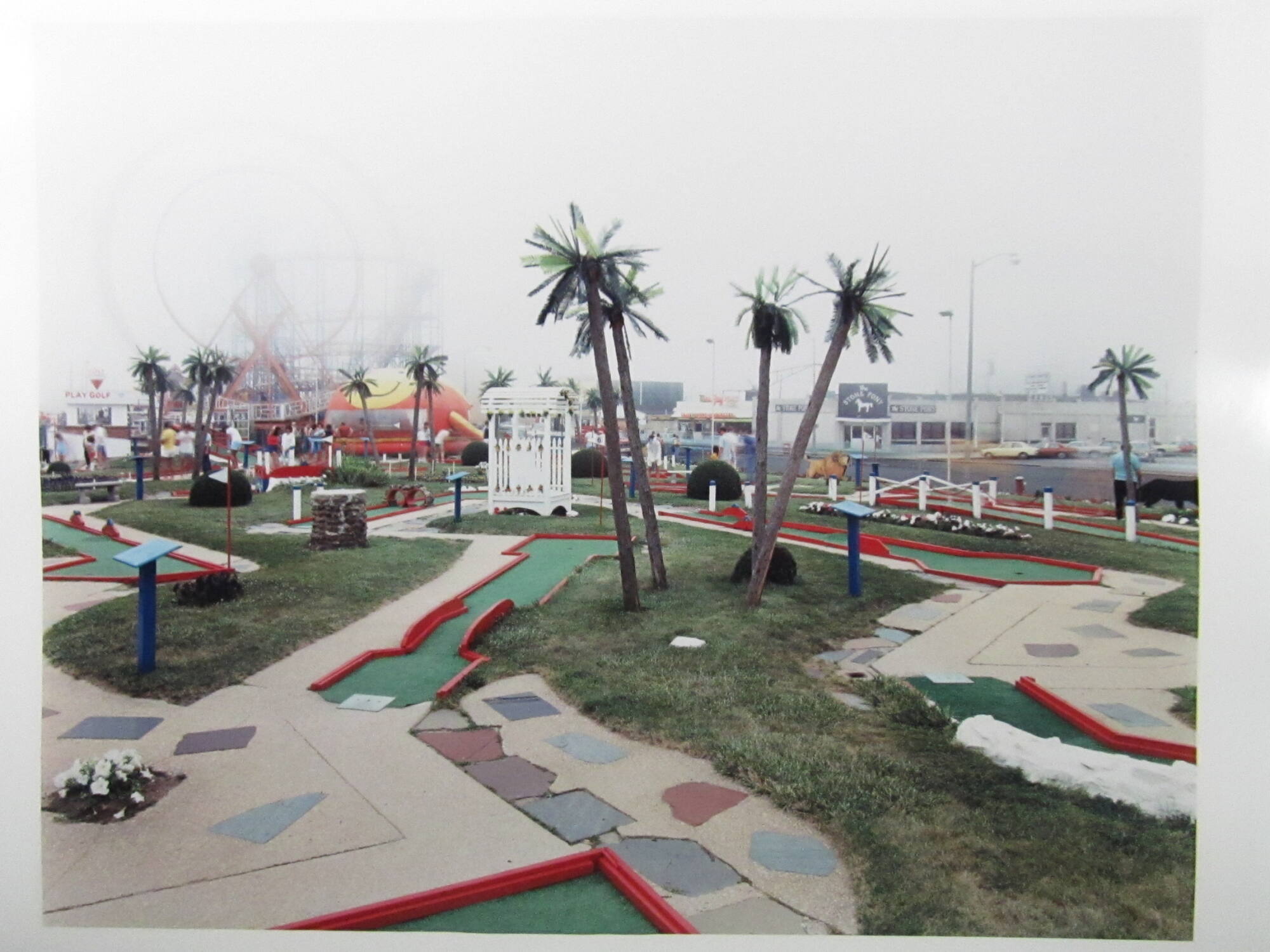 DescriptionOne of ten photographs included in portfolio. Image of minigolf course with palm trees. In the background there's a ferris wheel, hamburger stand, and sign advertising "The Stone Pony".Copyright© Joe Maloney