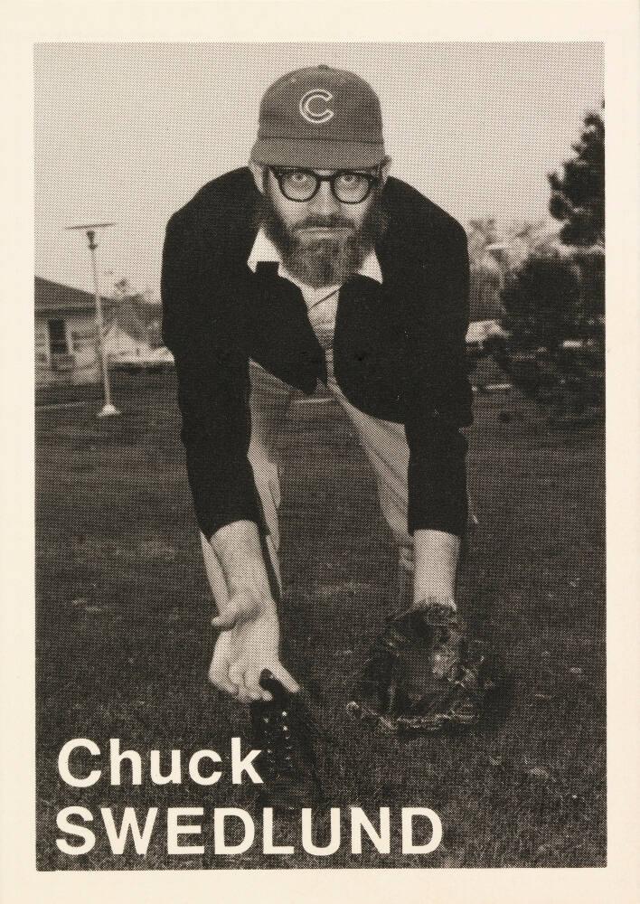 InscribedName printed on sheet recto, lower left, in white: "Chuck / SWEDLUND"