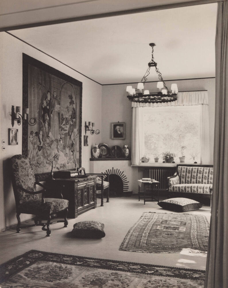 Inscribed on mount verso, top, in black pen: "Interior living room of Else Frank in Berlin - Dahben 1933".