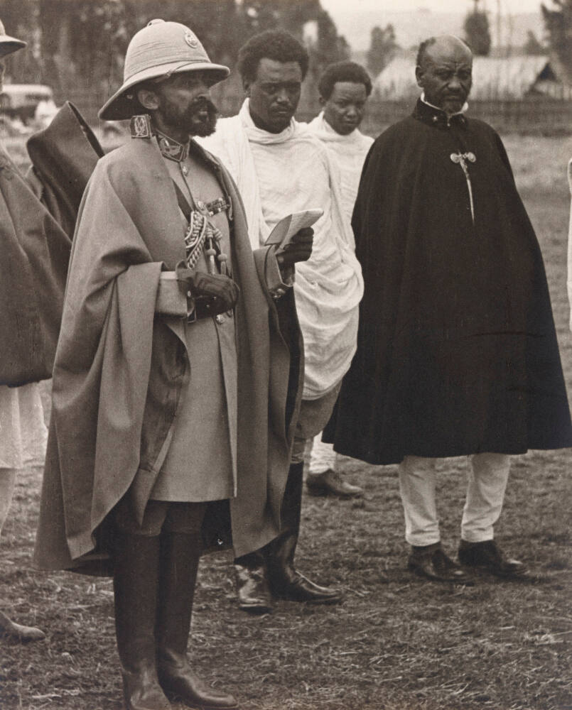 Inscribed on mount verso, top, in black pen: "Emperor Haile Selassie of Ethiopia watching military parade, Addis Ababa 1935".