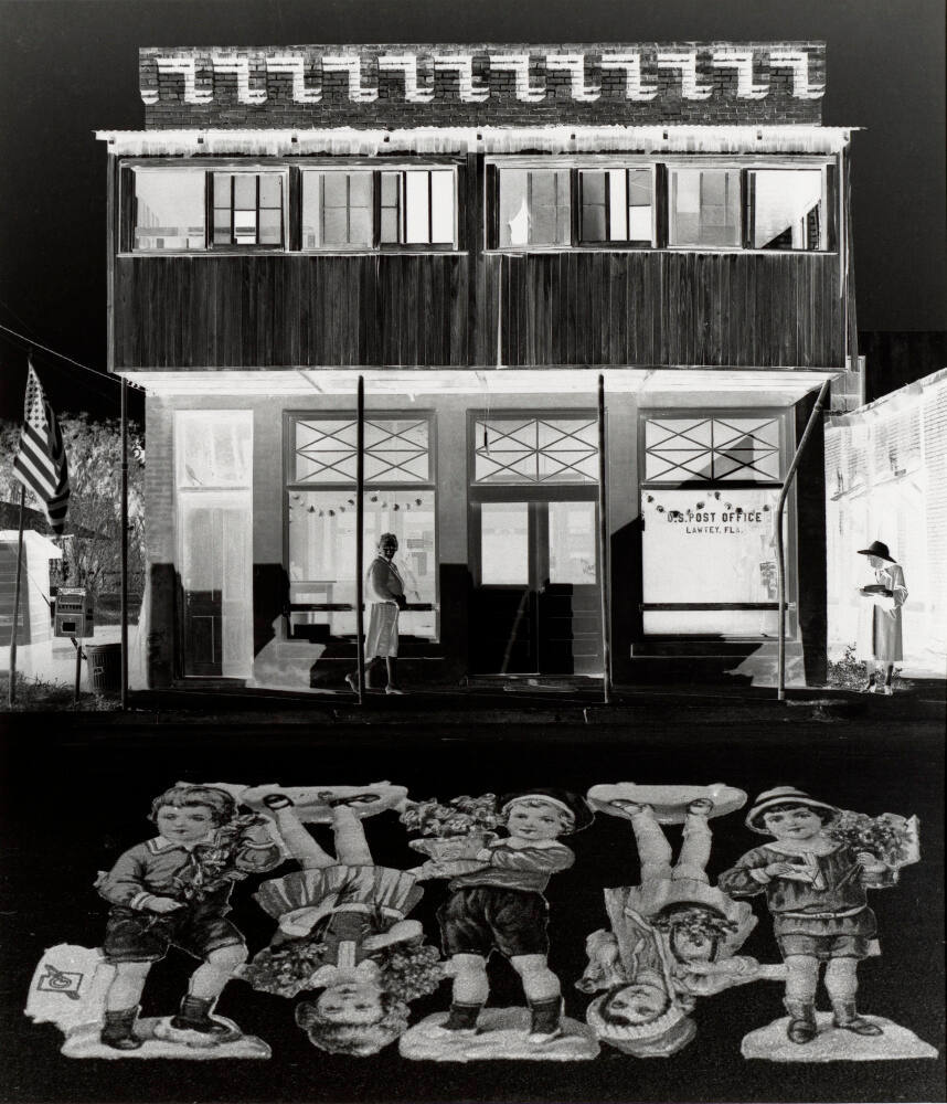 Artist’s stamp on sheet verso, bottom, in black ink with black pen: “ARCHIVALLY PROCESSED / ORIGINAL PHOTOGRAPH / JERRY N. UELSMANN / COPYRIGHT / 1964”;